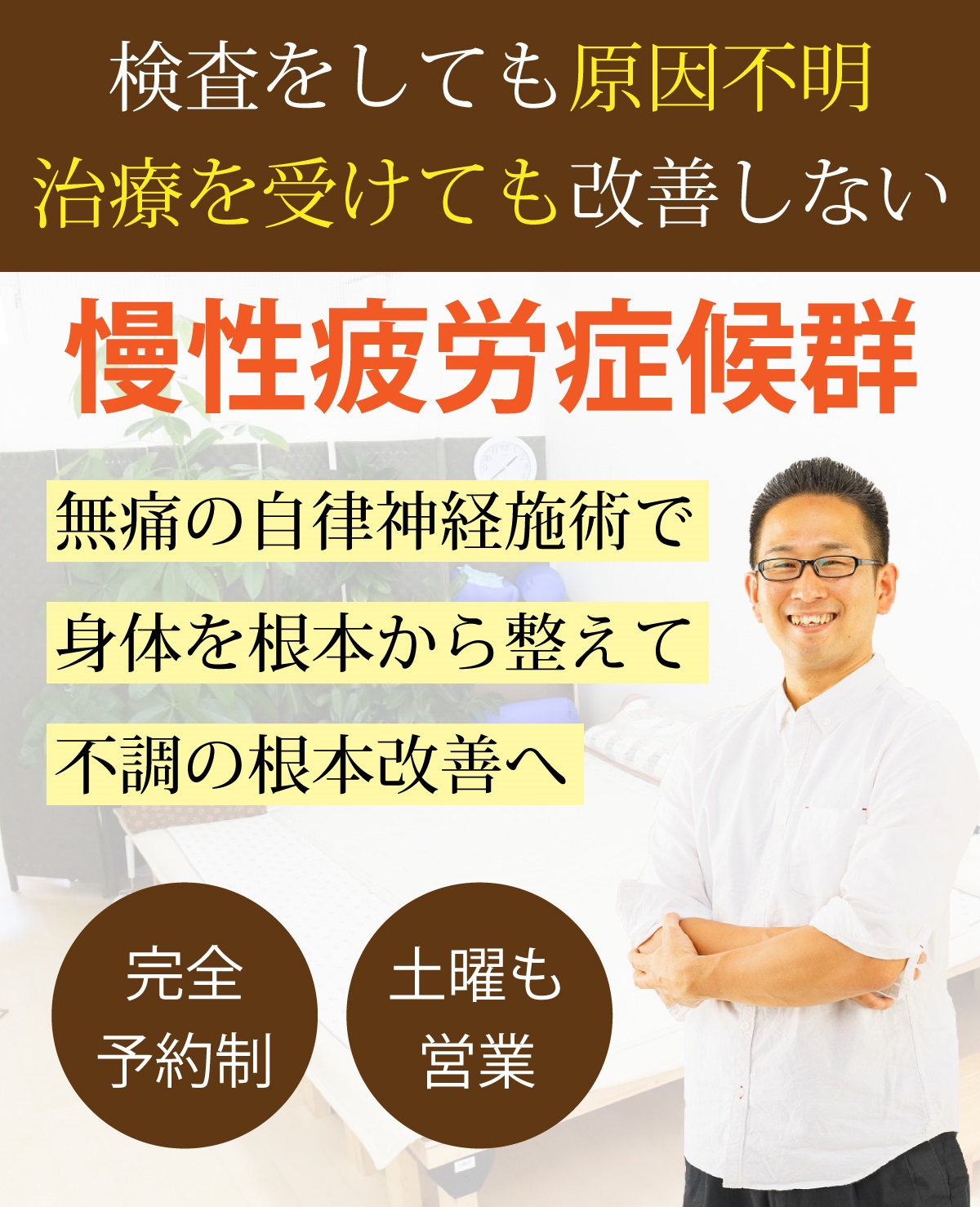 そのような原因不明の慢性疲労・倦怠感に対して、自律神経の観点から身体全体を整えて、症状を改善に導くのが当院です。
