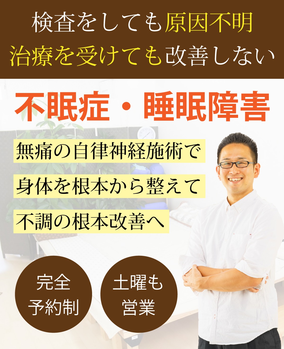 これらのゆがみを丁寧に解消することで、自律神経が整い、不眠症が改善に導かれていくのです。