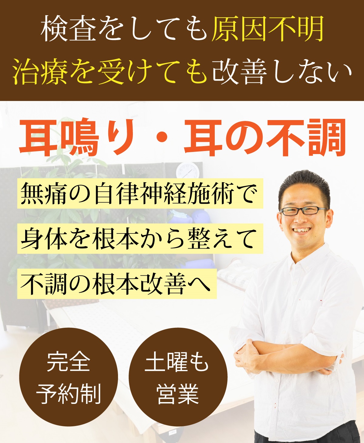 そのような異常なしの耳鳴り、原因不明の耳鳴りに対して自律神経の観点から身体を整えて、症状を改善に導くのが当院です。